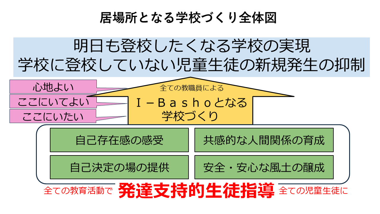 求められています。全ての児童生徒にとって「居場所となる学校づくり」を進めることが大切です。